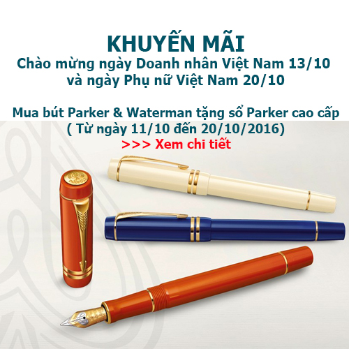 Hệ thống showroom bút cao cấp Parker & Waterman xin cảm ơn Quý khách hàng đã ủng hộ trong thời gian vừa qua, để tri ân khách hàng và chào mừng ngày Doanh nhân Việt Nam 13/10 và ngày Phụ nữ Việt Nam 20/10 , Parker & Waterman xin gửi tới Quý khách hàng chương trình khuyến mãi như sau: