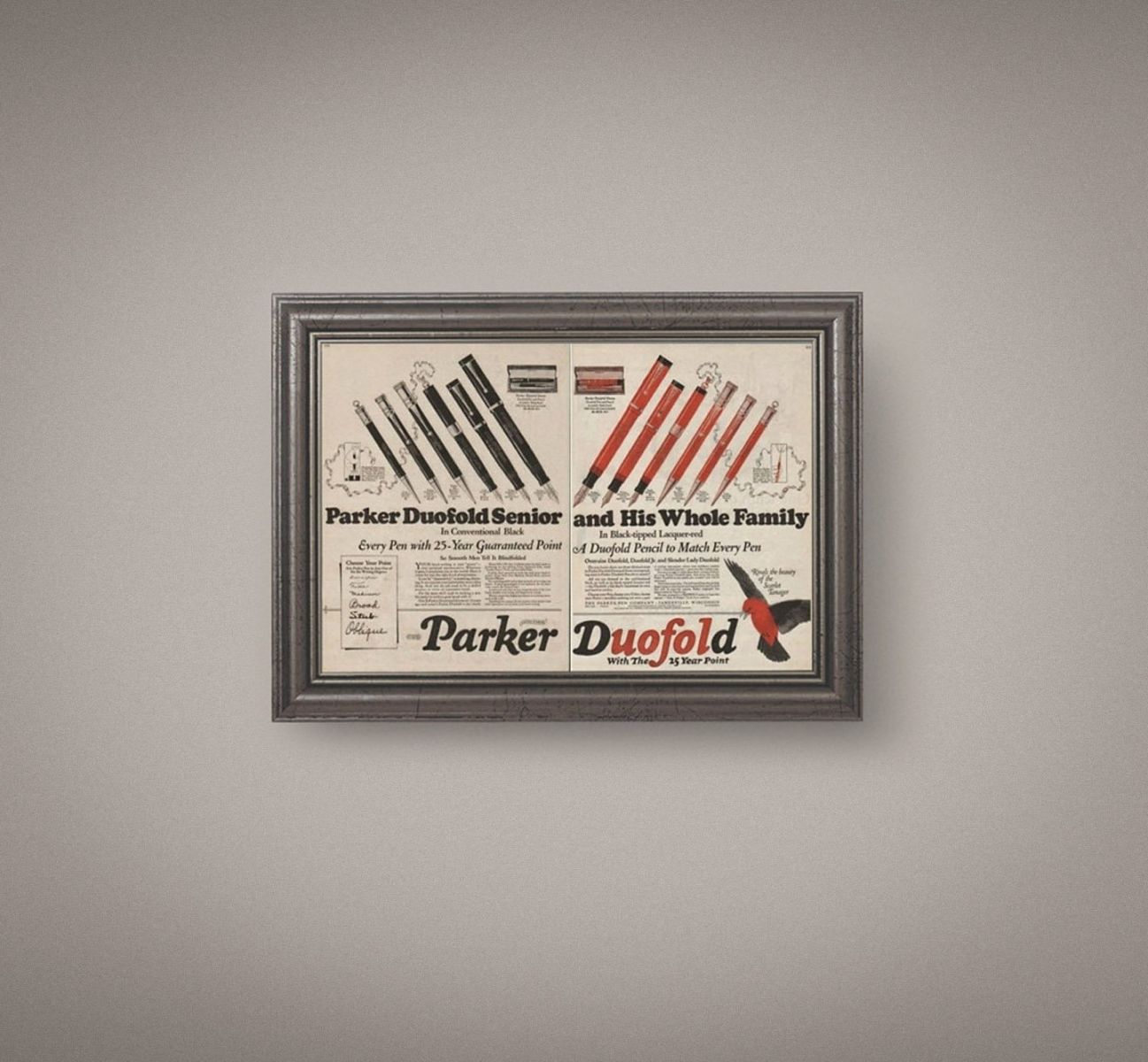 Parker ra mắt Duofold, một cây bút lớn, đậm, giá cao cấp, thể hiện tinh thần của Roaring Twenties. Ngay sau đó, Duofold trở nên nổi tiếng thế giới với 'Big Red' cho màu cam tươi mới và bảo hành 25 năm.